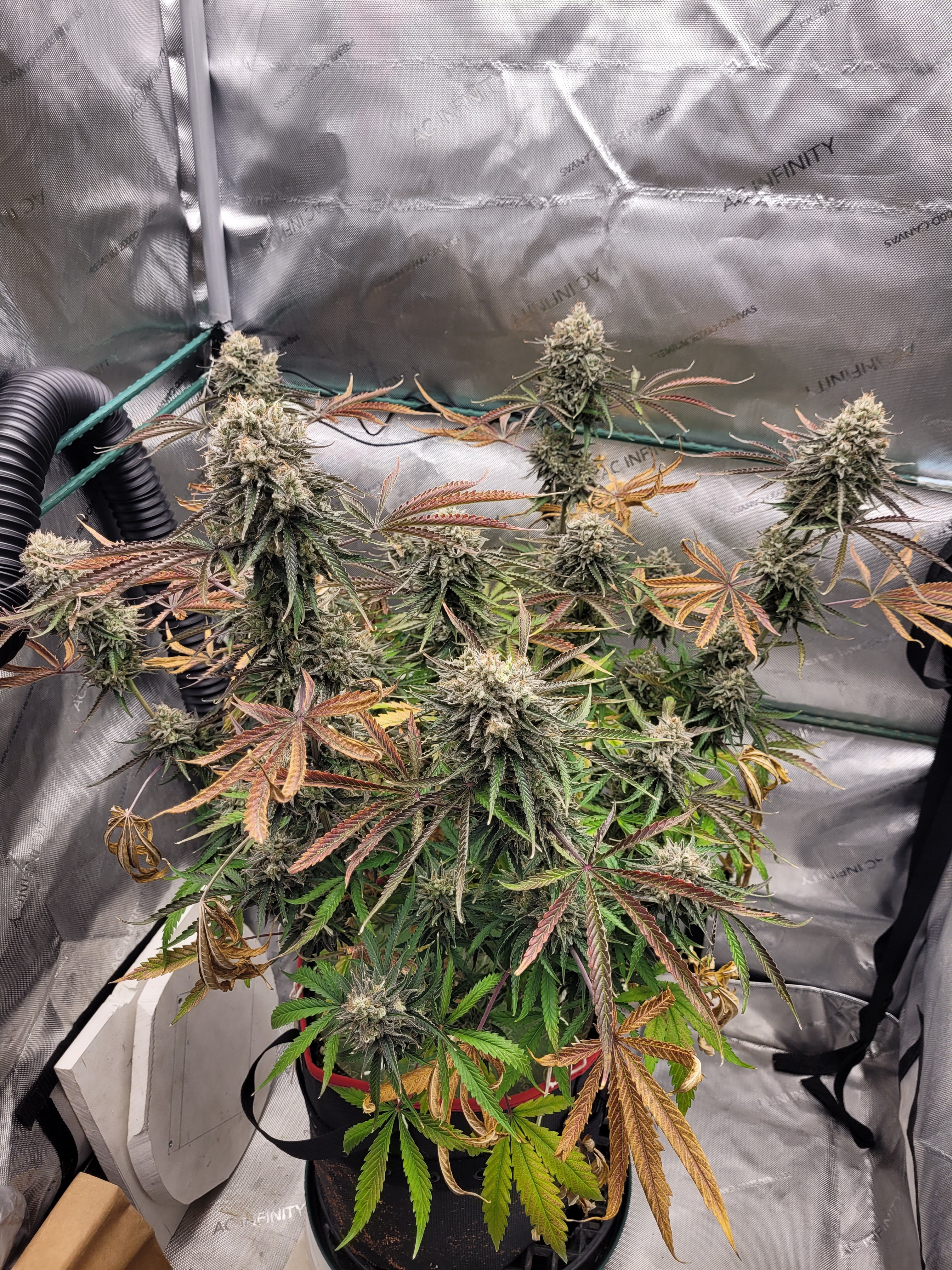 I topped this plant above the 4th node and stripped the lowest set giving me 6 mains. No major problems though the grow. She was a bit hungry so i was giving about 2 gal of EC 1.8 every 4/5 days. I chopped her down at 100 days and brown bag dried for 7 days. Ended up with about 123g of bud. This is one of my personal favorites. It has great pain releaving effect for me but doesn't knock you down. A functional smoke.