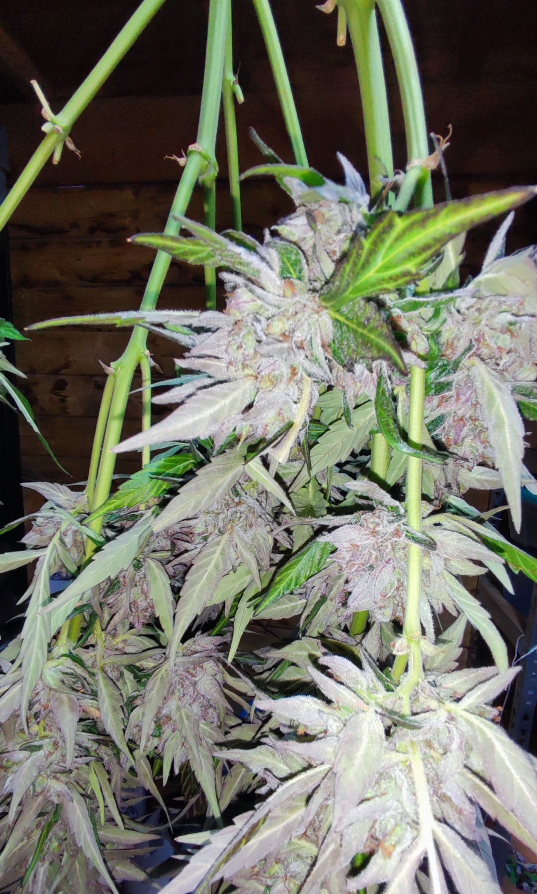 Give this lady plenty of feed during vegetative growth and she'll return the favor by producing plenty of bud during flower. And during this period the strangest smells start emitting from the buds when you caress or accidentally brush against them...I got overwhelmed by the smell of an over ripe pineapple, them sweet & sour smells were something I didn't expect.