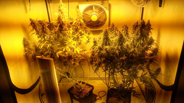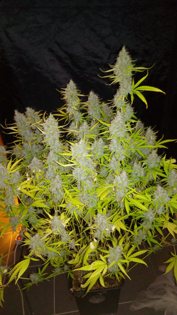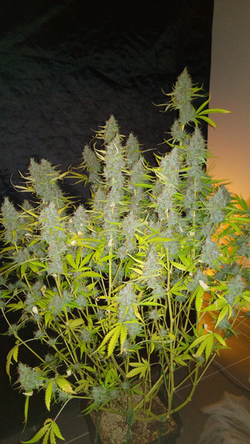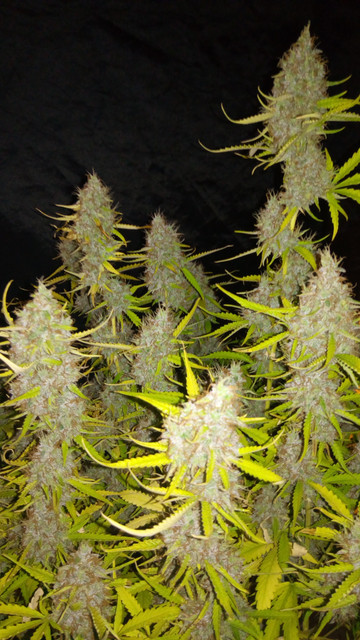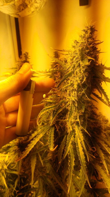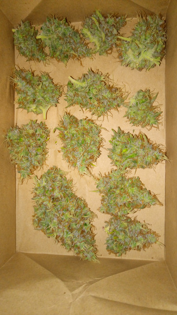 So, yesterday another plant was chopped, GBOG 1 to be exact :amazon:. Mostly cloudy trichs with just a pinch of amber. And again it was much more work than expected, she had a lot of colas :greenthumb:. The highest cola stood at 105 cm, while the rest ranged from 90 to 95 cm. The buds are sticky as can be, but she isn't sugarcoated as GBOG 2 is. This Glueberry pheno has a much more pronounced glue smell, GBOG 2 is much more berries. The high from the scissor hash is potent, uplifting and long lasting :bow:. 14 bags were filled with buds, 4 of them "popcorn" and I think that's about it concerning the harvest of GBOG 1, let's move on to the pics :smoking:.