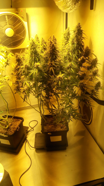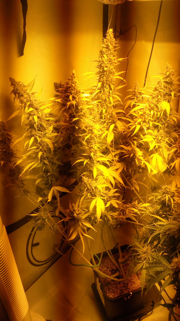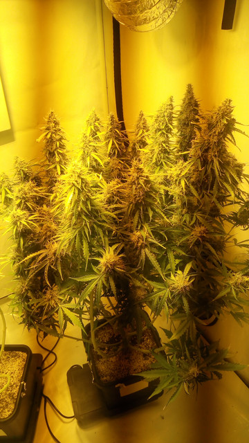 Once I harvested the girls up front I got to really appreciate the two girls in the back, GBOG 3 and NL. They are very BIG and have some monster colas :vibe:. I was really surprised once they got the whole tent to themselves, they are gonna yield very much and both are frroooosted. GBOG 3 will succeed at filling up those huge colas, I really didn't expect that :bow:. Anyway, most of their colas are much bigger than any cola from the first two and they are still bulking up and producing trichomes, very excited what will turn out. They are still showing NO signs of amber, but unfortunately I can't let them stay longer than this weekend :nono:. They will be cut off the water today.