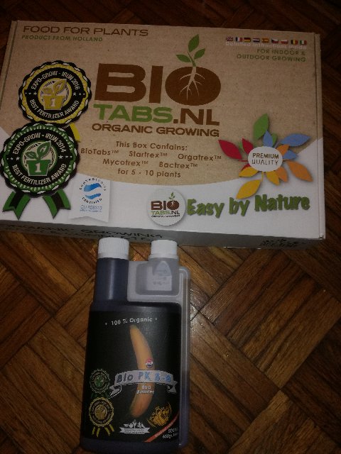 Soo here i gave them their first feeding just for royal gorillas auto cheese gotta wait abit stil young just as litle bit of taste 1ml of orgatrex and litle bit of bactrex and i pushed 2bio tabs on sides on each plant.