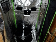 Soo here im watering with 2m of orgatrex lowered the lights and maxed them a litle bit lights are at 81 cm /31 inches of the canopy around 24 lux each QB light 70 wats total 210 wats and here i pushed 2 bio tabs on the royal cheese auto !