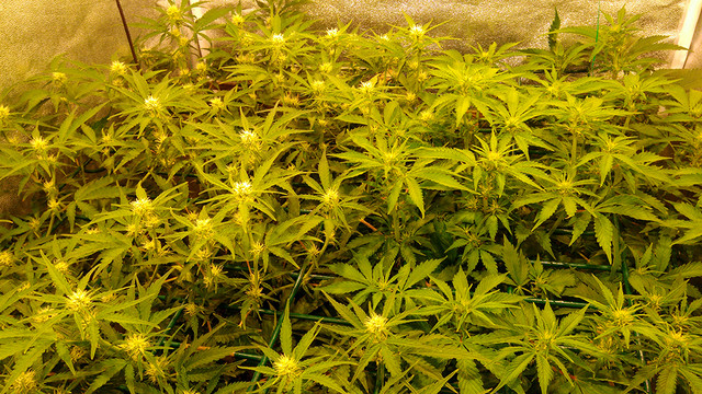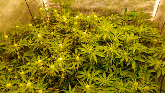 You are doing a scrog, not LST. Your scrog is too high and you did it too late. It's not modified, you just didn't do it right. Your plants Critical+ 2.0 is light in color, get a better Air pump and it might perk up. Autopots keep your plants too wet, the pots are too big and they just sit in water. Without proper Air your Coco is staying too wet for your roots. Invest in a better pump if you want better results in 4gal pots.