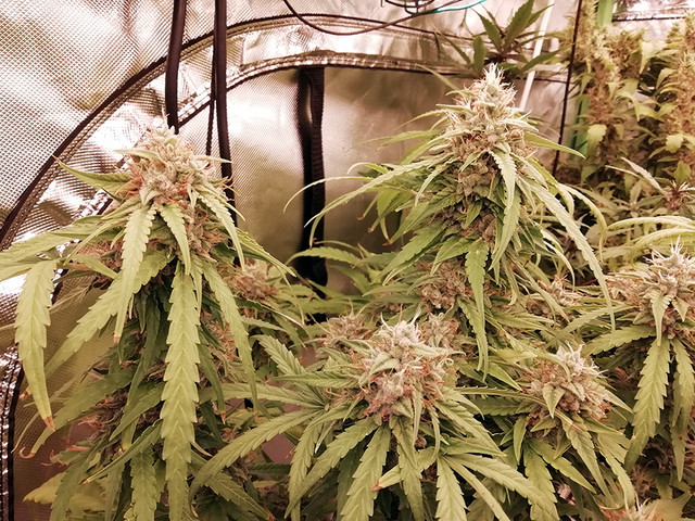 Whole tent, looks empty and sad. No worries, 3-4 weeks and it will be full again. Left behind is ACOP at 104 days, next to it is ACJ with her lower buds remaining to get more fat on it.